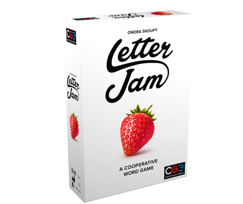 Letter Jam is a 2-6 player cooperative word game where players assist each other in composing meaningful words from letters around the table. The trick is holding the letter card so that it’s only visible to other players and not to you.